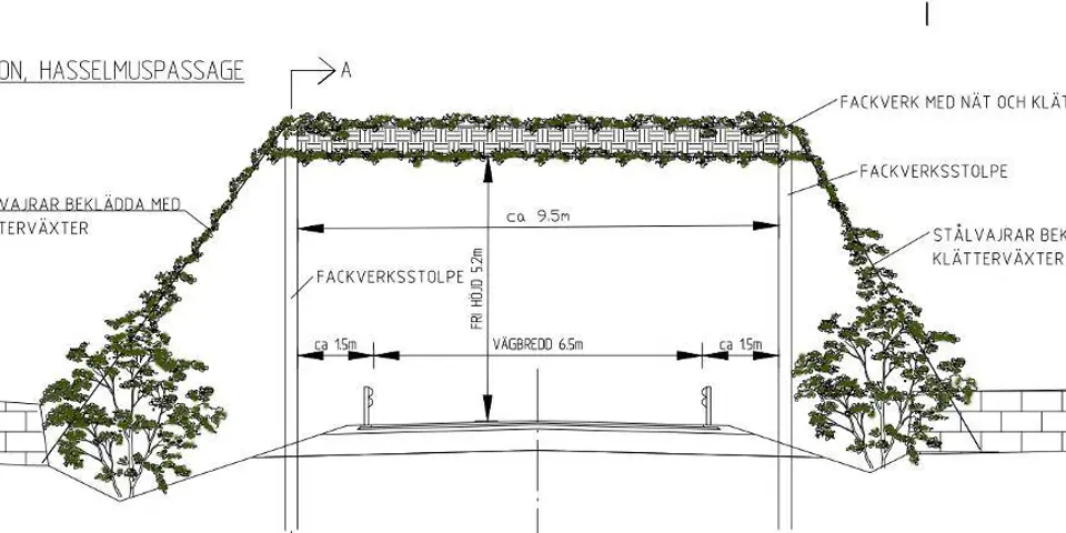 "Vi har hittat hanarnas bon på den ena sidan nya vägen och honornas på den andra. Så vi återskapar naturen för att mössen ska hitta varandra. Björnbär och vildros ska vara på marken och bokharabinda ska täcka hela stålkonstruktionen, så att den smälter in i landskapet med alla andra växter" säger Christian Björnsson, projektledare vid Trafikverket.