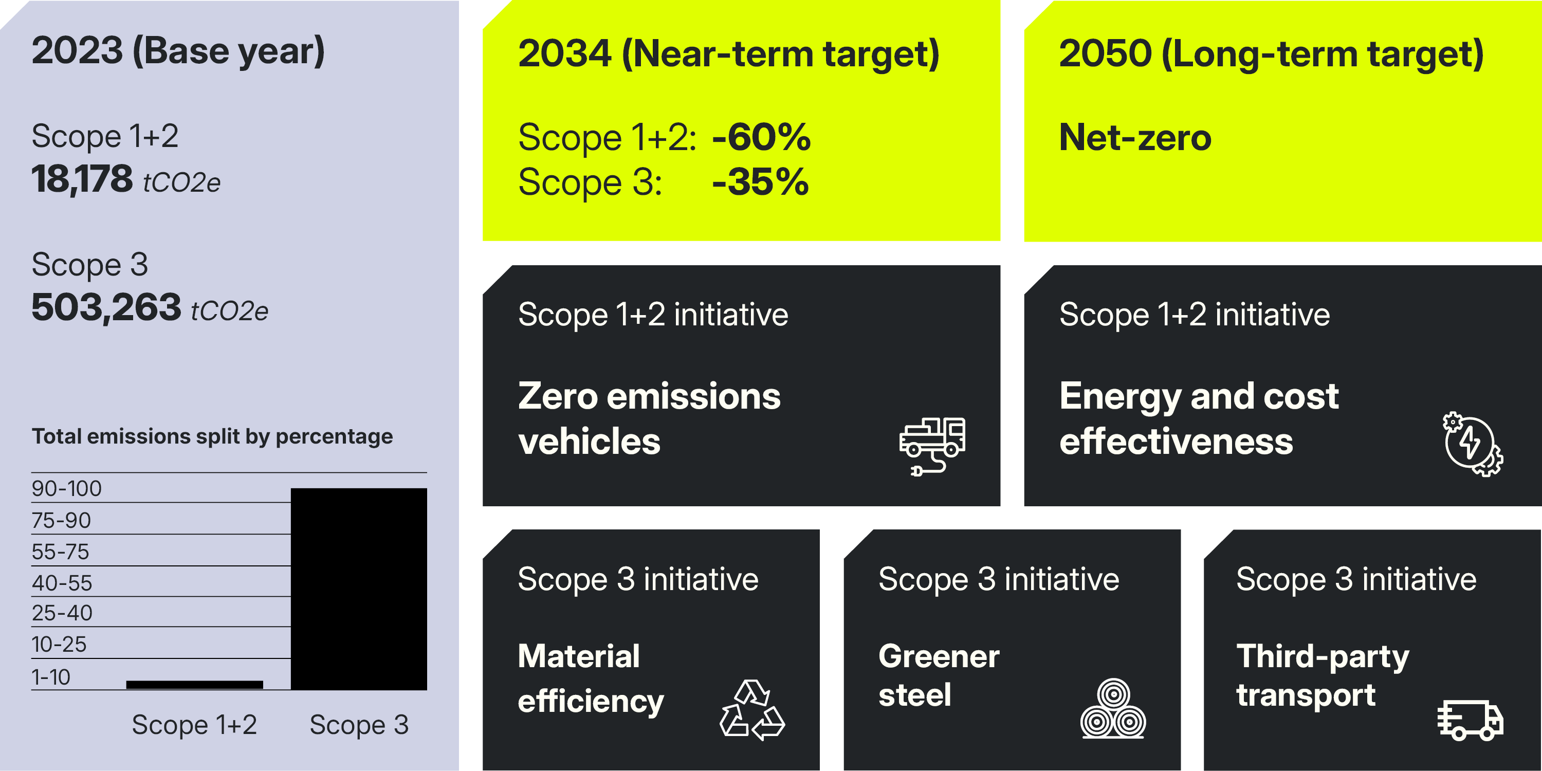 Vi har satt upp närliggande vetenskapsbaserade mål för att minska växthusgasutsläppen med basår 2023. Dessa mål inkluderar: