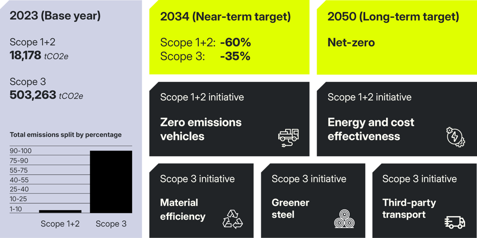 Dessa mål är i linje med SBTi:s Net-Zero Standard och utgör ett strukturerat angreppssätt till avkarbonisering inom områden där vi kan påverka direkt och indirekt.