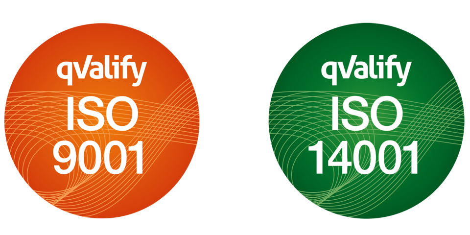 Sedan april 2021 är vi certifierade enligt standarderna ISO 9001 (kvalitet) och ISO 14001 (miljö). Vi är dedikerade till att systematiskt förbättra vår kvalitet och leva upp till konkreta och erkända miljökrav.