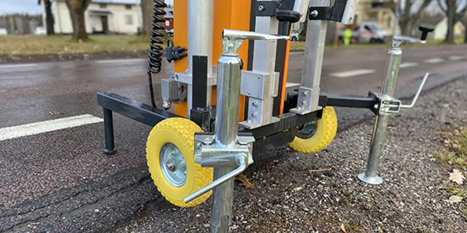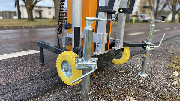 Trafikljuset är kompakt utformat för enkel transport. Lastning och lossning kan utföras av endast en person. Sedan justeras stödbenen så enheten är i våg, bommen monteras och trafikljuset är färdigt att användas på bara några minuter.