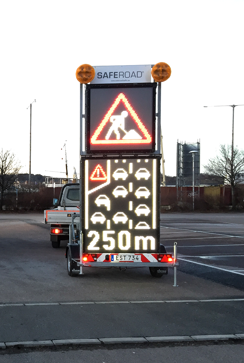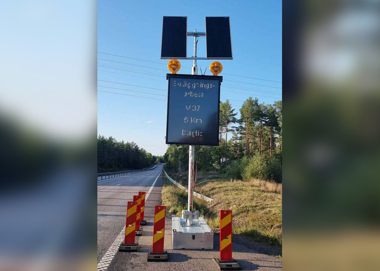 Våra digitala vägmärkestavlor med solcellsdriven VMS informerar trafikanterna om vad som väntar längre fram i trafiken. Skyltarna styrs enkelt via vår egen ITS-plattform och används för att skylta upp vägarbetsområden eller andra tillfälliga trafiklösningar.