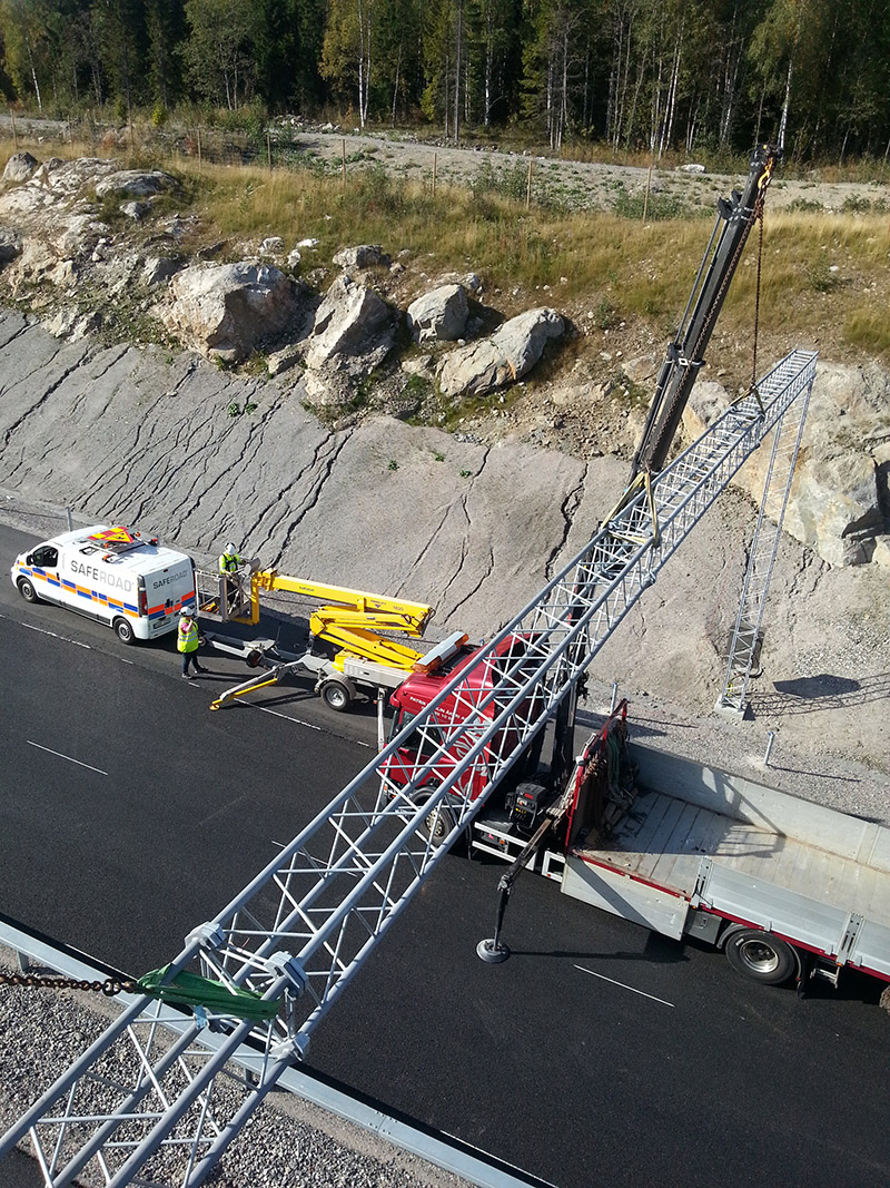 Med rätt utrustning, utbildning och kompetens säkerställer vi kontraktskrav och regelverk när skylt skall sättas upp, fackverk monteras eller portaler resas i små som stora projekt. Saferoad är ISO 9001 och ISO 14001 certifierade, detta innebär att vi kvalitetssäkrar våra processer och entreprenader för ett tryggt utförande och säker slutprodukt.