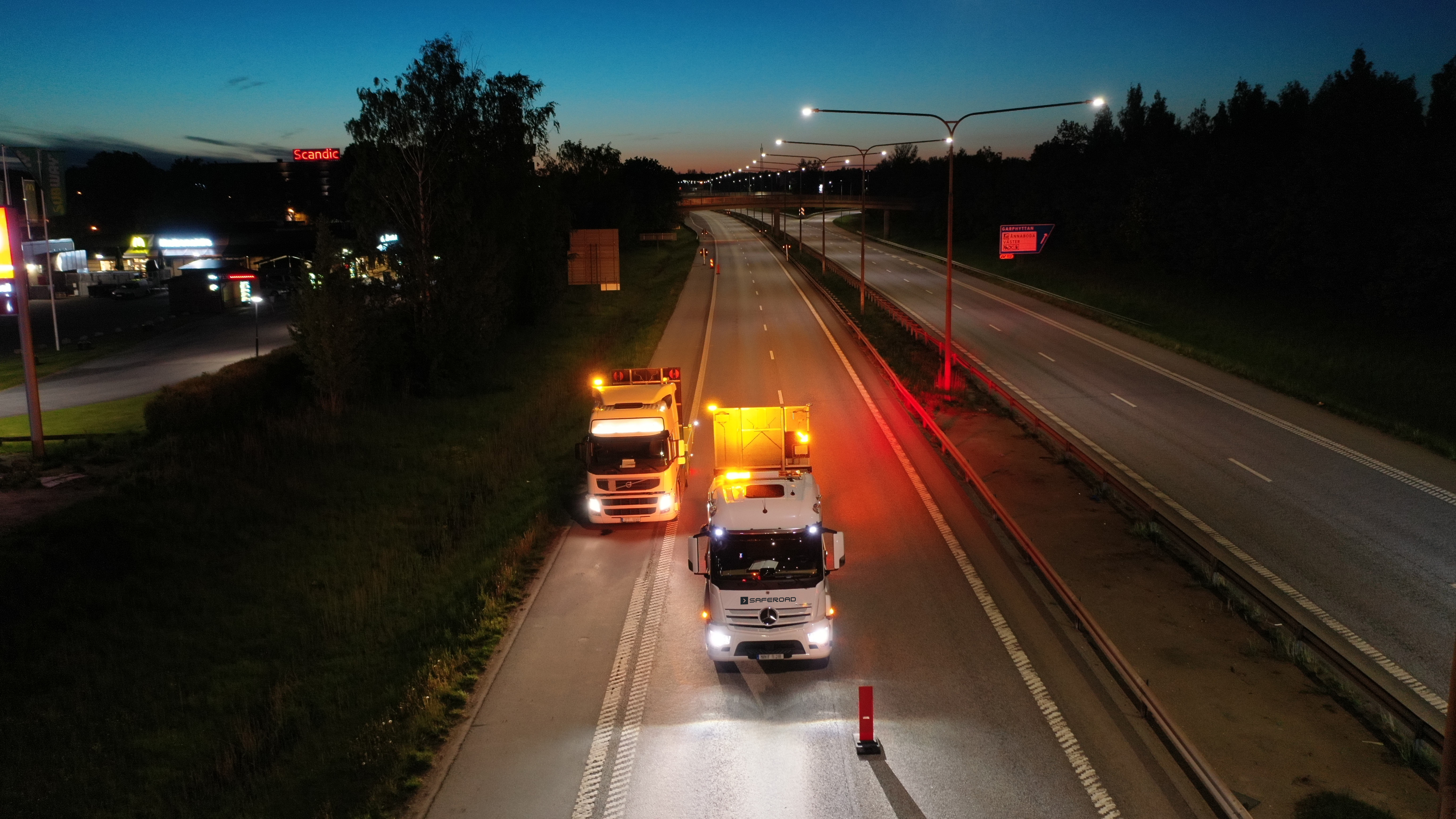 Vi löser dina behov av TMA-skydd vid vägarbete, sprängning, beläggning med mera. TMA (Truck mounted attenuator) är ett lastbilsburet tvärgående påkörning skydd som skyddar och vägleder trafikanter vid vägarbetsplatser. TMA används som vägledning, förvarning eller påkörningsskydd. Våra TMA-fordon skyddar effektivt arbetsplatsen och kan hyras med eller utan chaufför.